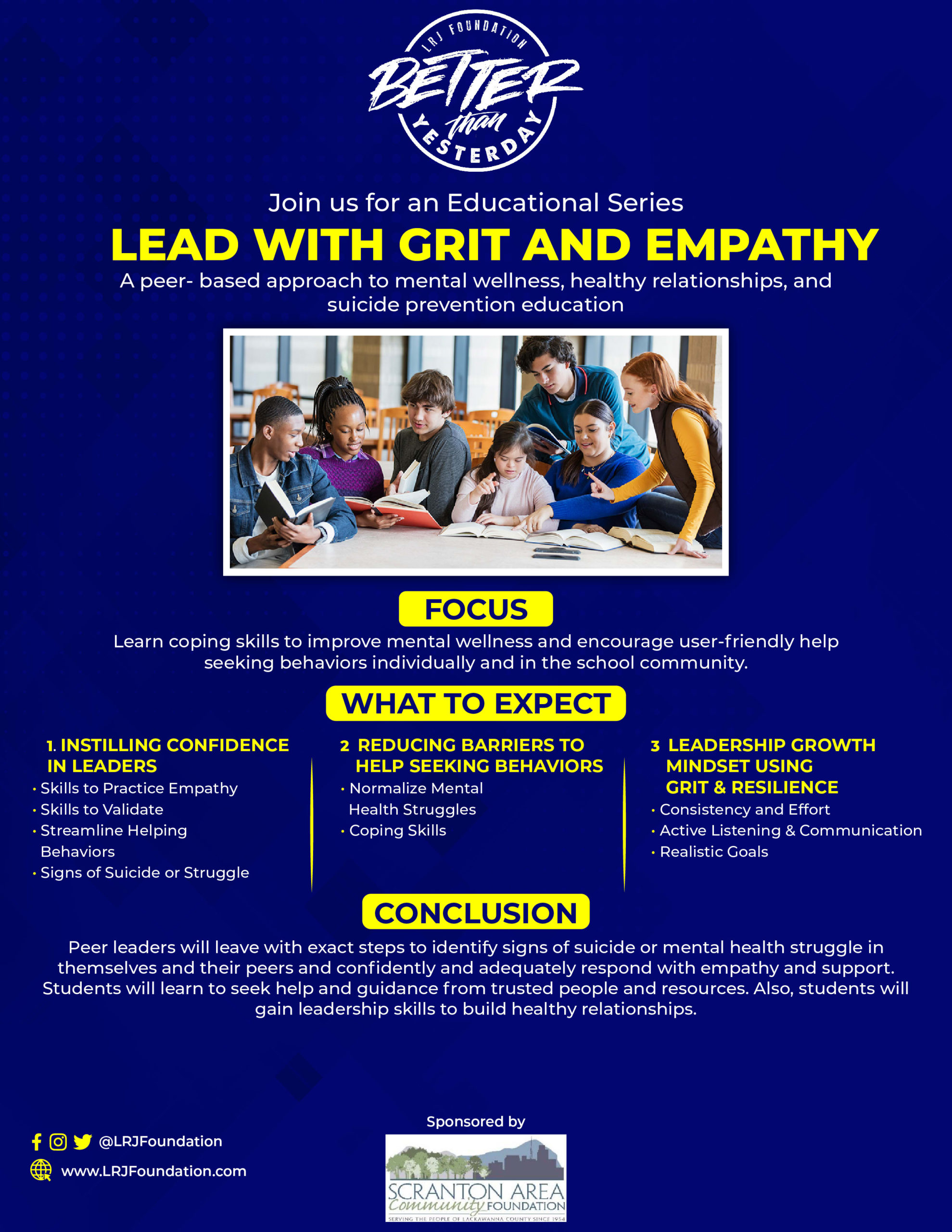 Introducing, Lead With Grit And Empathy, A social-emotional learning approach to a better understanding of mental health, the power of building healthy relationships, and Suicide Prevention to support oneself and your peers.
